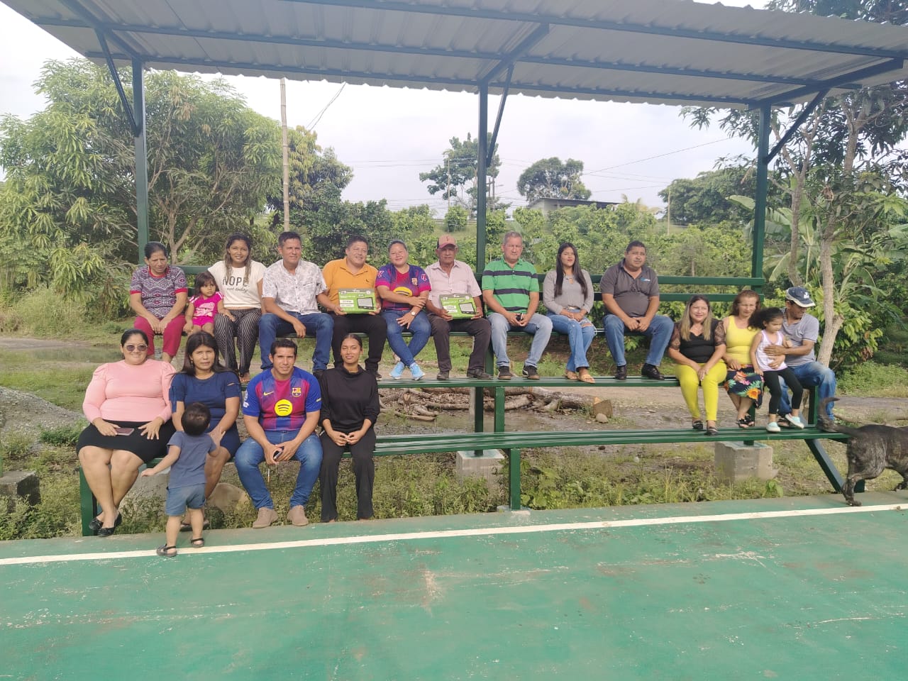 El presidente José Luis Urrutia “Pepe Lucho”, junto a la vicepresidenta Gardenia Sanabria Herrera y los vocales Luis Alfredo Muñoz Analuiza, Danny Yance Ramírez y Shirley Acosta Vera, realizaron la entrega oficial del mantenimiento de la cancha de usos múltiples en el sector La Hueca.