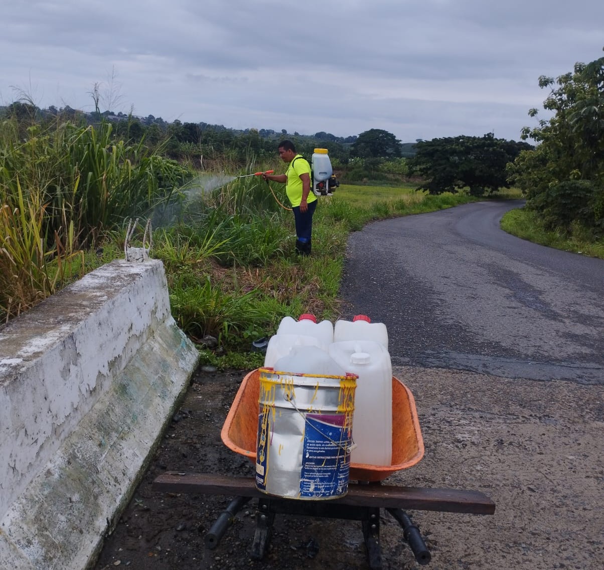 Labores de fumigación de maleza en el recinto La Reveza