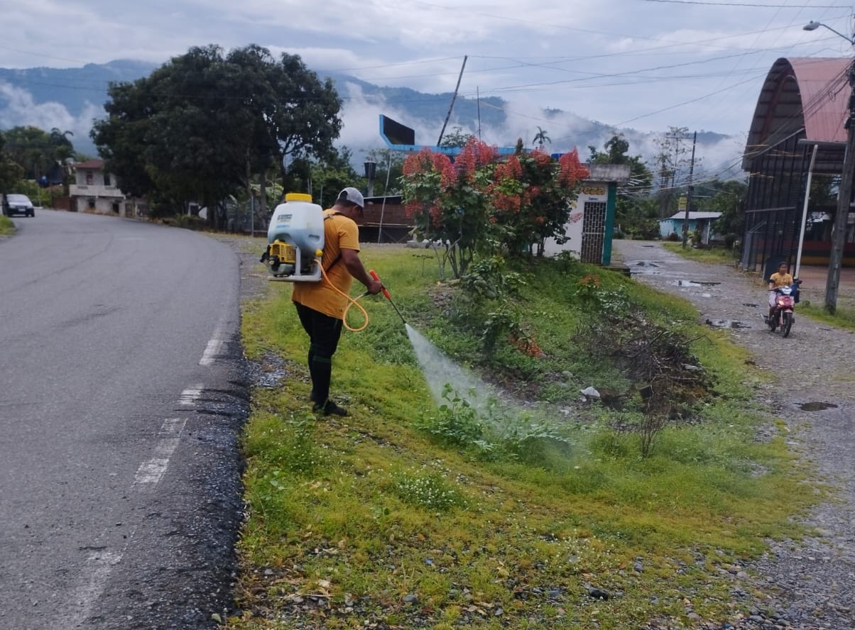 Se realizaron labores de fumigación de maleza en el recinto La Reveza, limpieza de cunetas desde el puente Zapotal hasta el recinto Zapotal Nuevo, y taponamiento de baches con material pétreo en la Av. 12 de Octubre.